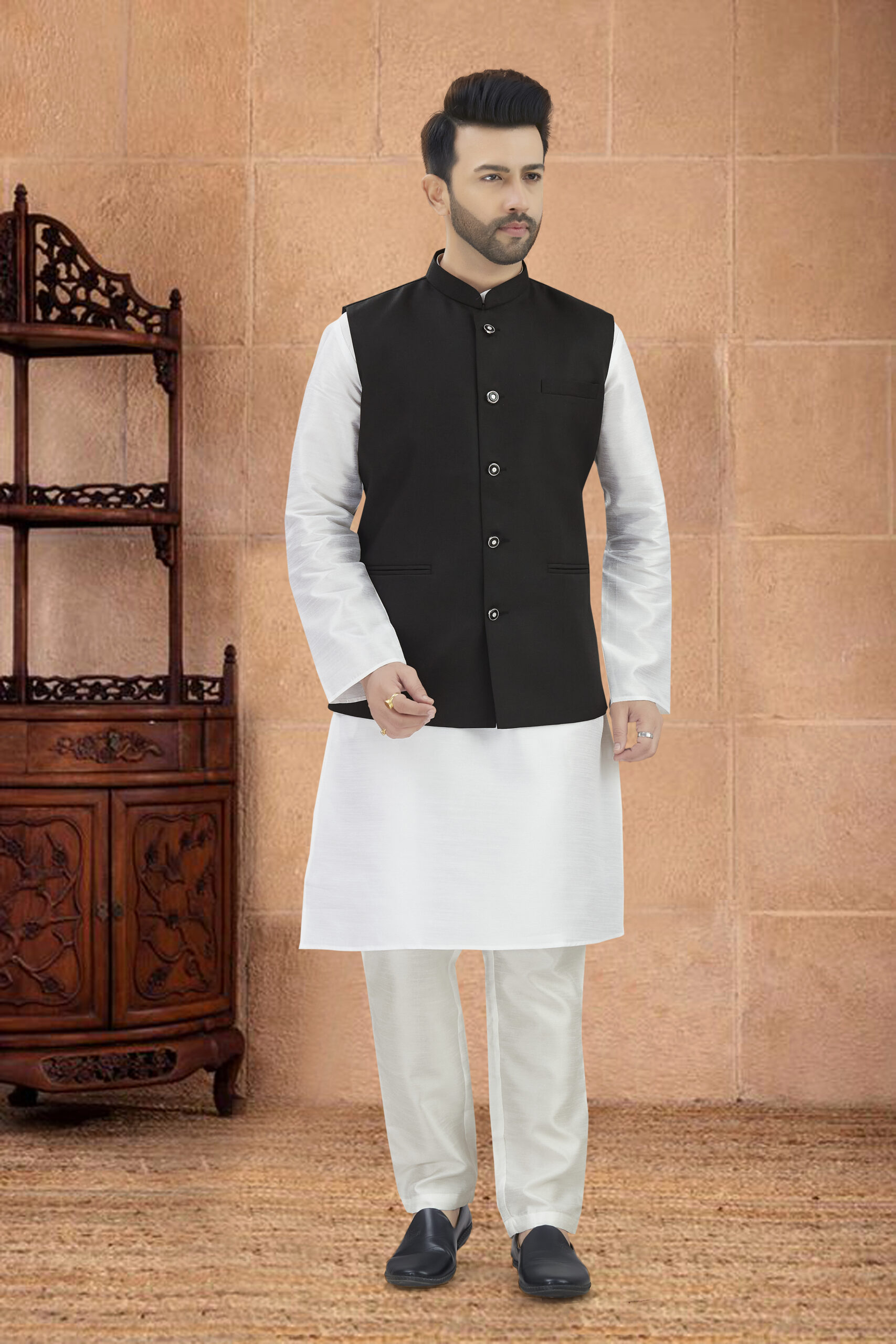 Make an unforgettable impression in our LINEN COTTON KURTA SET WITH JUTE FABRICS WAIST-COAT, who appreciate classic luxury. Crafted with premium LINEN COTTON KURTA SET WITH JUTE FABRICS WAIST-COAT , The entire ensemble is adorned with intricate self-colored A perfect blend of tradition and modern glamour, tailored just for you.
